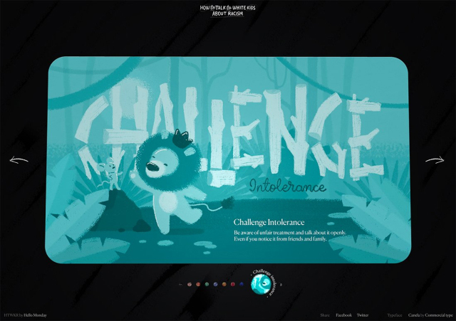 上面的“如何與白人孩子談?wù)摲N族主義”的timeline微交互很簡(jiǎn)單,并且完全與設計的其余部分整合在一起。他們包含了一定程度的細節,使移動(dòng)通過(guò)這本書(shū)的數字版本令人愉快。